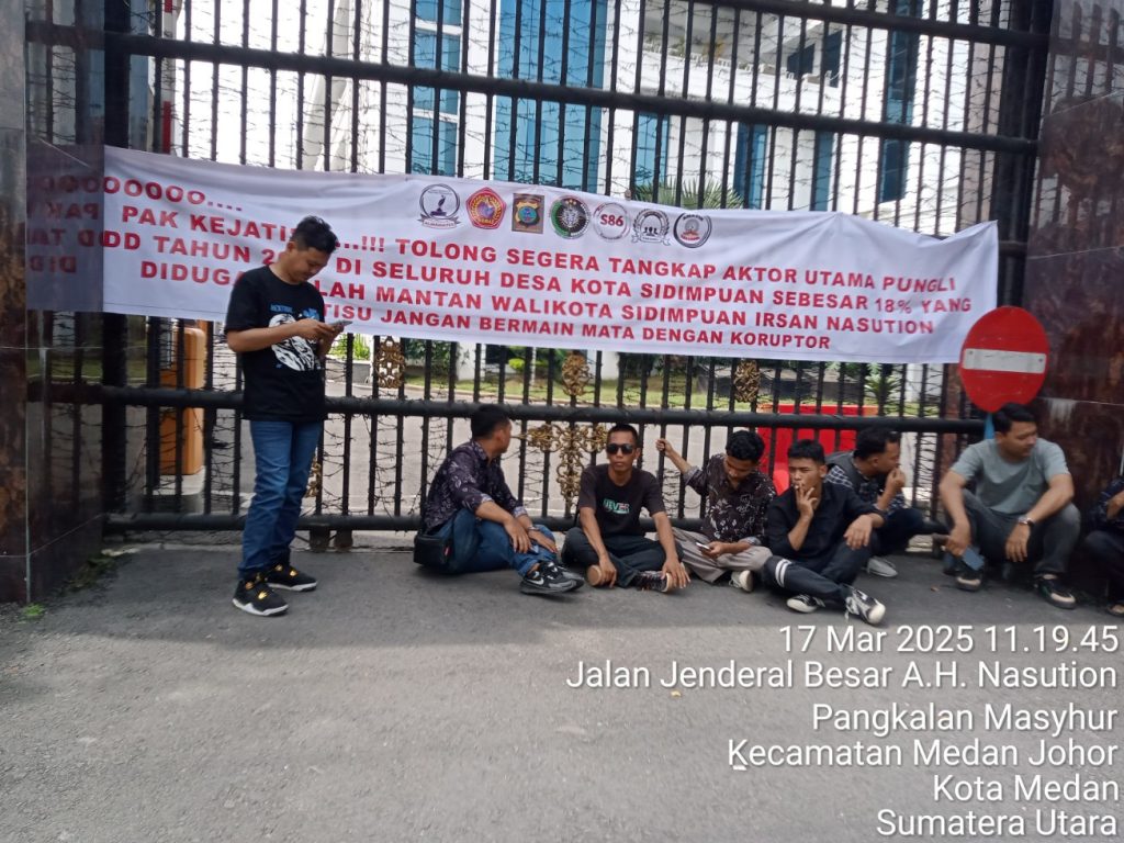 Medan (WartaDhana.Com): Puluhan Gabungan Mahasiswa Masyarakat Peduli Hukum Tapanuli Bagian Selatan (GMMPH Tabagsel) meminta kepada Kejati Sumut agar segera periksa aktor utama terkait alokasi dana desa yang diduga dipungli sebesar 18 persen dari desa-desa se-Kota Padangsidimpuan, Sumatera Utara.
