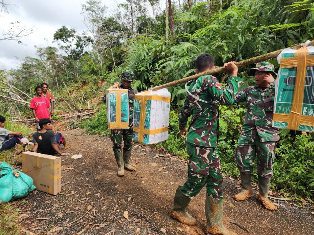 Teks foto: Satgas Gulbencal Kodam I/BB Pasang Lampu Tenaga Surya di Kecamatan Sitahuis. (Ist)